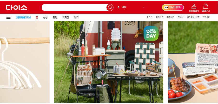 아래의 사진은 다이소몰 홈페이지 입니다. 홈페이지에 접속하셔서 맨위의 검색창에 내가 구매할수도 있는 물건을 검색합니다.